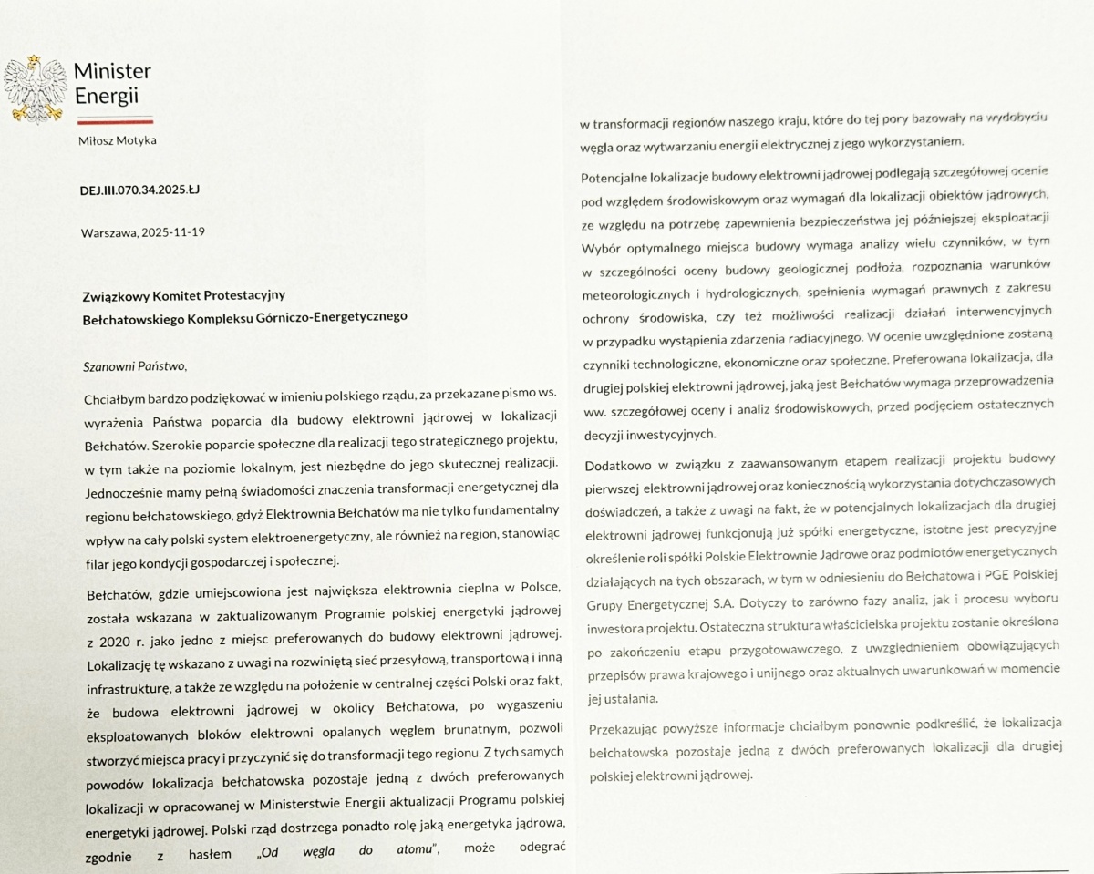 ODPOWIEDŹ MINISTRA MIŁOSZA MOTYKI